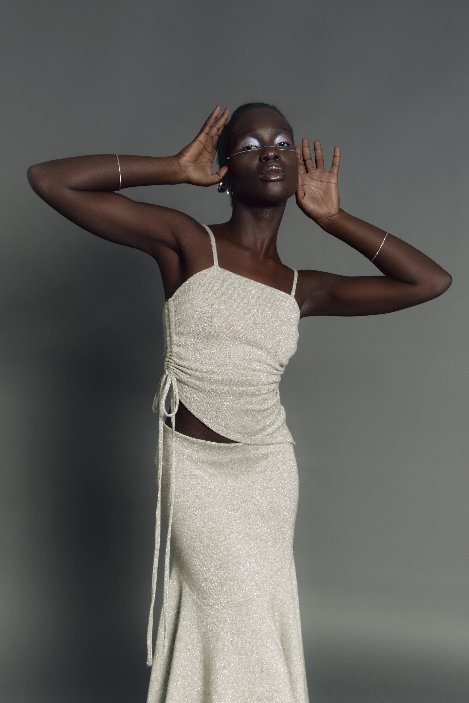 - Tela 78% viscosa 22% poliéster con lurex (brillante).